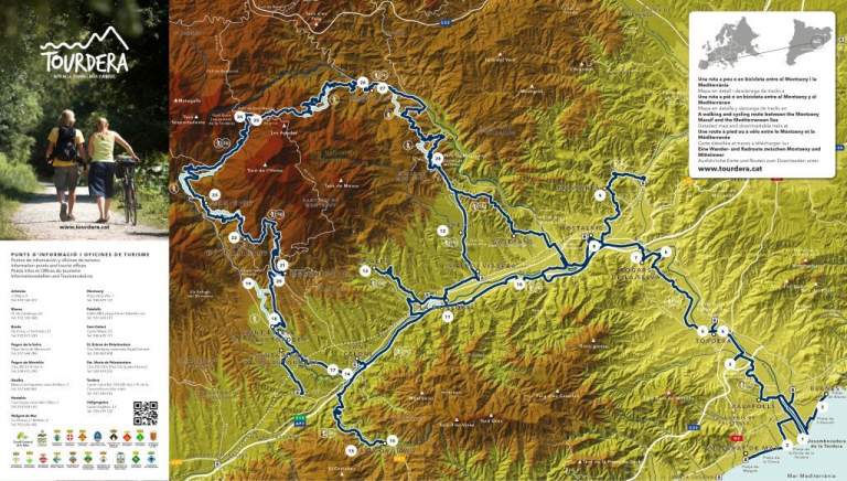 La Tourdera recorre fins a 18 municipis de les comarques de la Selva, el Maresme i el Vallès Oriental, a cavall entre les províncies de Girona i Barcelona. Es tracta d’un itinerari lúdico esportiu, que us permetrà gaudir del territori comprès entre el Massís del Montseny (Parc Natural) i la Mar Mediterrània (amb la Costa Brava i la Costa del Maresme), sempre que ho feu respectant la natura, els ecosistemes i les propietats privades.